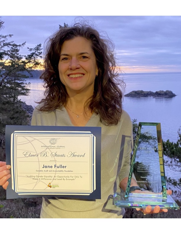 أولاً، “تدقيق في المساواة بين الجنسين: فرصة للأجهزة العليا للرقابة المالية والمحاسبة لتحقيق فرق والقيادة بالمثل”، بقلم جاين فولر وماري إيلين بيروبي من المؤسسة الكندية للتدقيق والمساءلة، هو مقال يعكس الالتزام بأهداف التنمية المستدامة للأمم المتحدة والتدقيق في المساواة بين الجنسين. والمؤسسة الكندية للتدقيق والمساءلة مؤسسة لا تتوخى الربح تعمل على تعزيز وتقوية التدقيق في أداء القطاع العام والإشراف عليه والمساءلة في كندا وخارجها من خلال البحث والتعليم وتبادل المعرفة. وسلطت الكاتبتان الضوء على بناء القدرات في مجال التدقيق الجندري من خلال تفسير وتطبيق أدلة المؤسسة الكندية للتدقيق والمساءلة وتدريباتها، مما يساعد المدققين على معالجة قضايا المساواة بين الجنسين بشكل أفضل في إجراءات التدقيق في الأداء. وتسلَّمت السيدة/ شارون كلارك من المؤسسة الكندية للتدقيق والمساءلة الجائزة في الإنكوساي بالنيابة عن فولر وبيروبي.