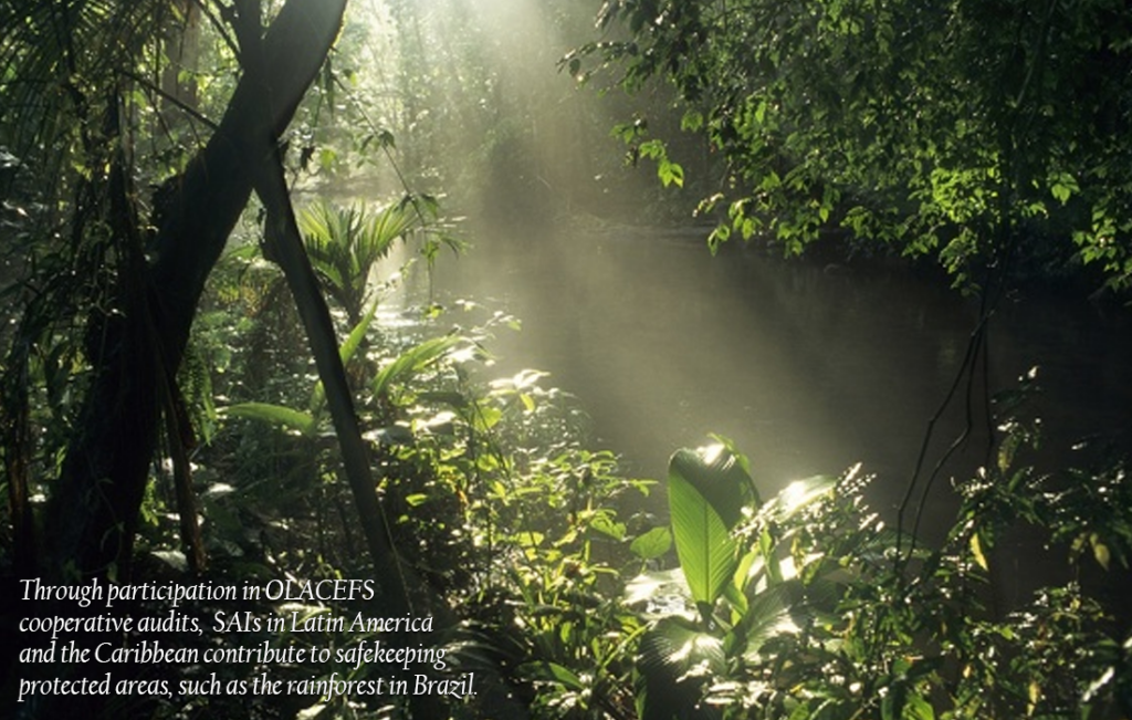 في أمريكا اللاتينية ومنطقة البحر الكاريبي ، التعاون التقني مع OLACEFS يركز على تعزيز التدقيق البيئي من خلال أ مشروع يساهم في تعزيز عمليات التدقيق واتصالات أصحاب المصلحة – على الصعيدين الداخلي والخارجي ، بما في ذلك لجنة الأمم المتحدة الاقتصادية لأمريكا اللاتينية ومنطقة البحر الكاريبي ، وبرنامج البيئة ، وإدارة الشؤون الاقتصادية والاجتماعية ، والاتحاد الدولي لحفظ الطبيعة.