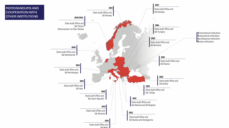 SAO actively participates in the INTOSAI and EUROSAI communities and has signed 43 memorandums of cooperation with supreme audit institutions and entities from international, professional, educational, and governmental sectors, strengthening partnerships and promoting the exchange of knowledge and best practices.